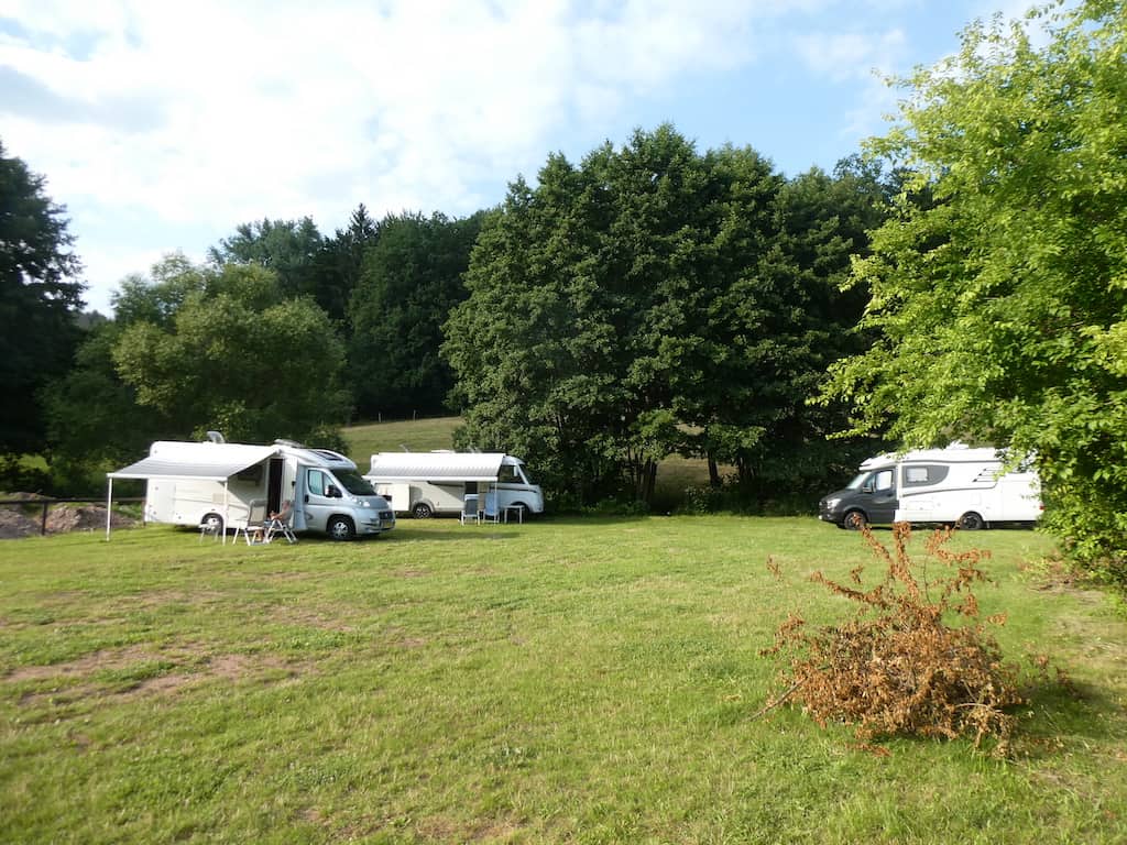Es gibt wohl Stellplätze, aber die sind an der Strasse und uns zu laut. Schlussendlich landen wir in der Nähe von Eisenach in Wutha-Farnroda auf einem wunderbar ruhigen Stellplatz an einem Bächlein mit hohen Bäumen.