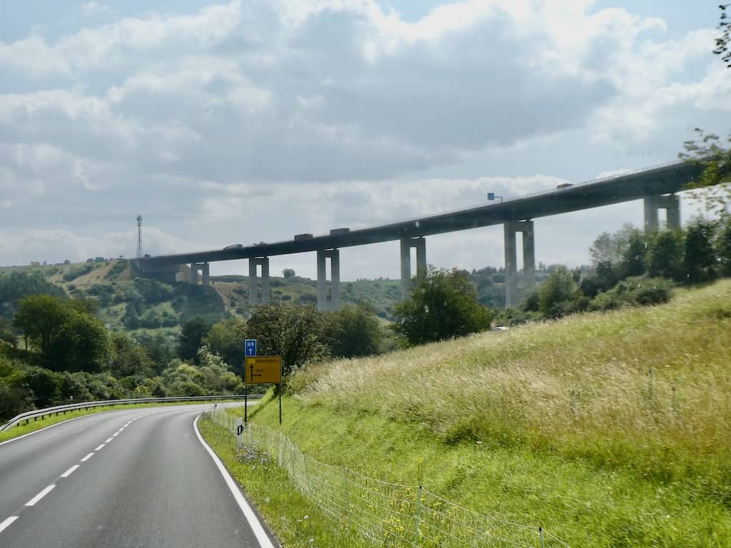 Von diesem Tal sehen wir die Autobahnbrücke, auf der wir vorgestern Richtung Meiningen fuhren.