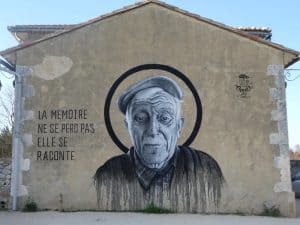 Unweit von uns prangt an einer Hausfassade dieser tolle Kopf mit einem weisen Spruch: „die Erinnerungen gehen nicht verloren, sie erzählen weiter“.