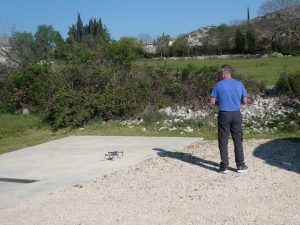 Ein Campernachbar, ein Franzose, startet seine Drohne und macht damit Videos und Fotos.