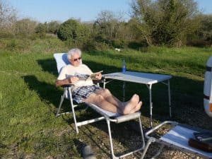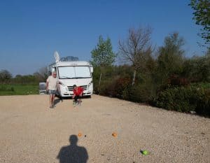 der Schatten gehört zu einem Camper-Nachbarn, einem Holländer.