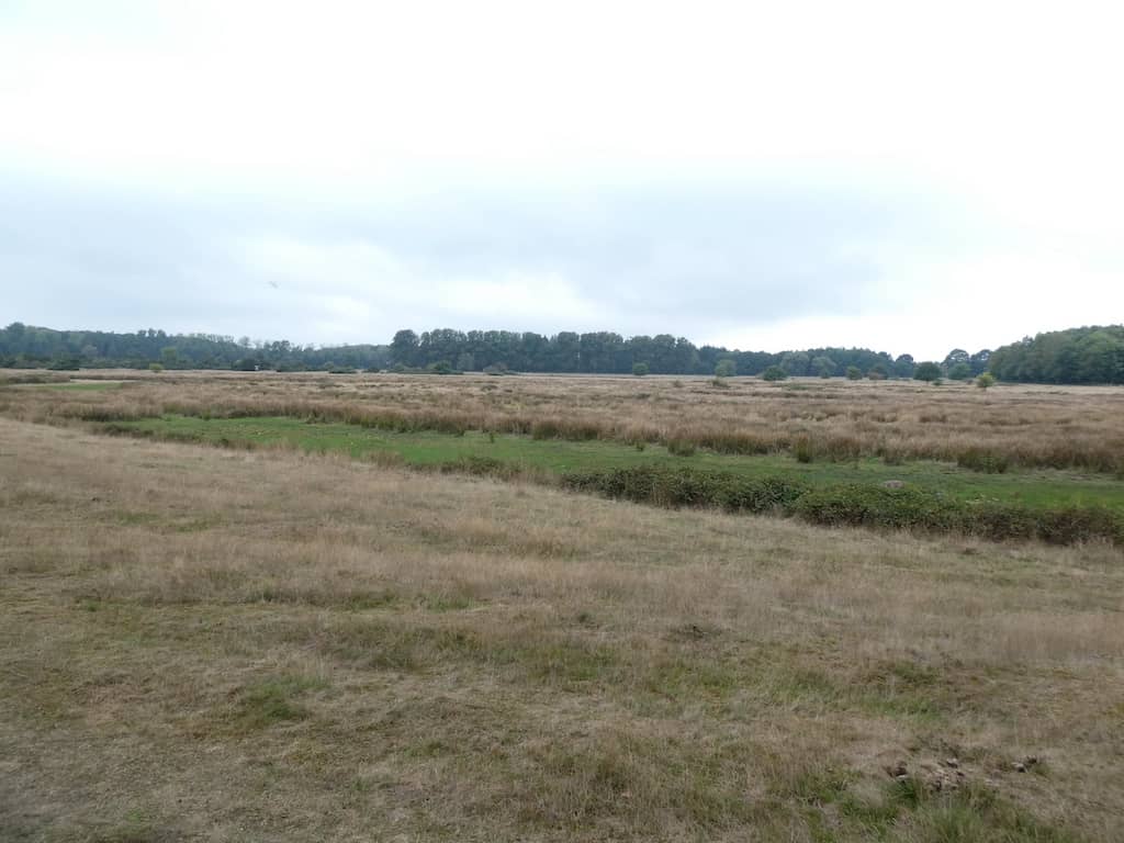 Durch ein Gatter kommt man in das Gehege, durch den der Naturerlebnispfad führt. Eine wunderschöne Heide-Landschaft, die für gute Fotos etwas Sonne verdient hätte.
