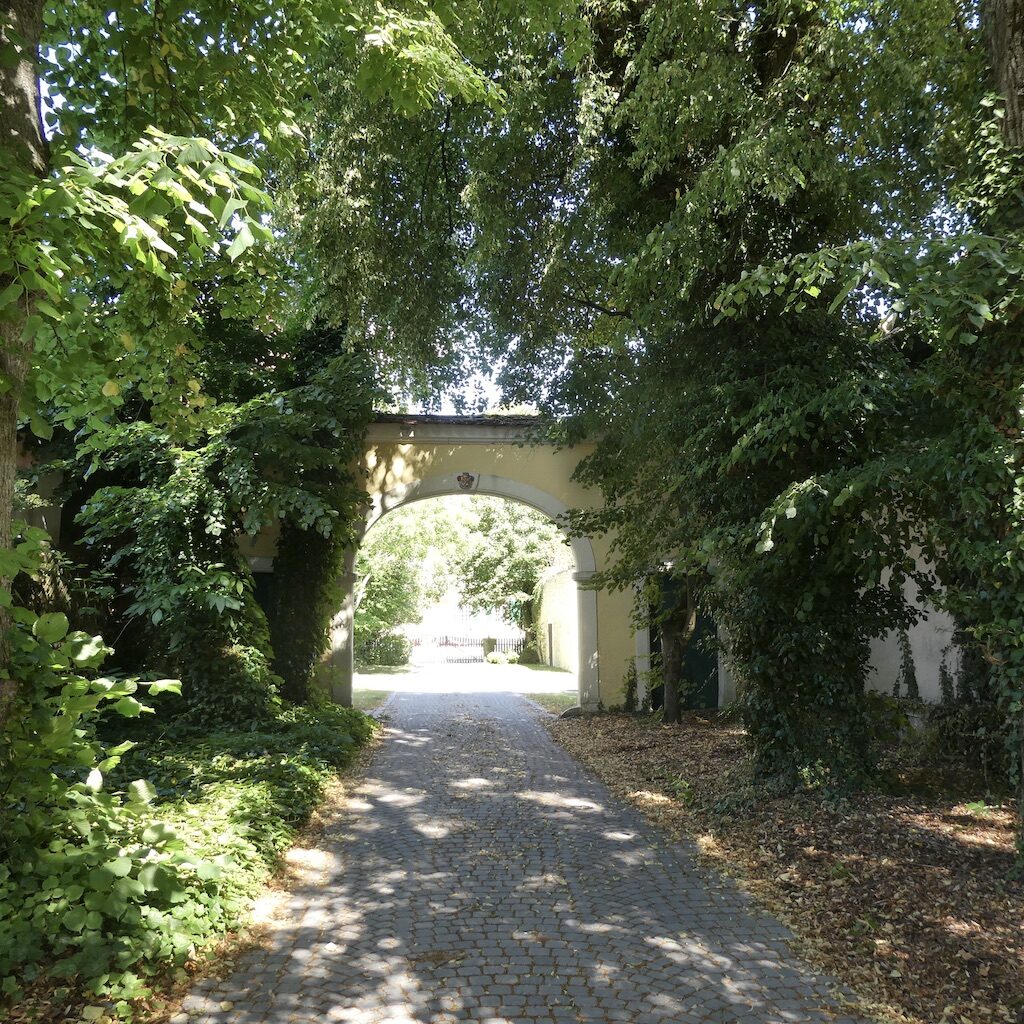Die in der Ferne erkennbare Kapelle liegt auf einem Privatgelände eines Herrschaftshauses und ist somit nicht zugänglich.