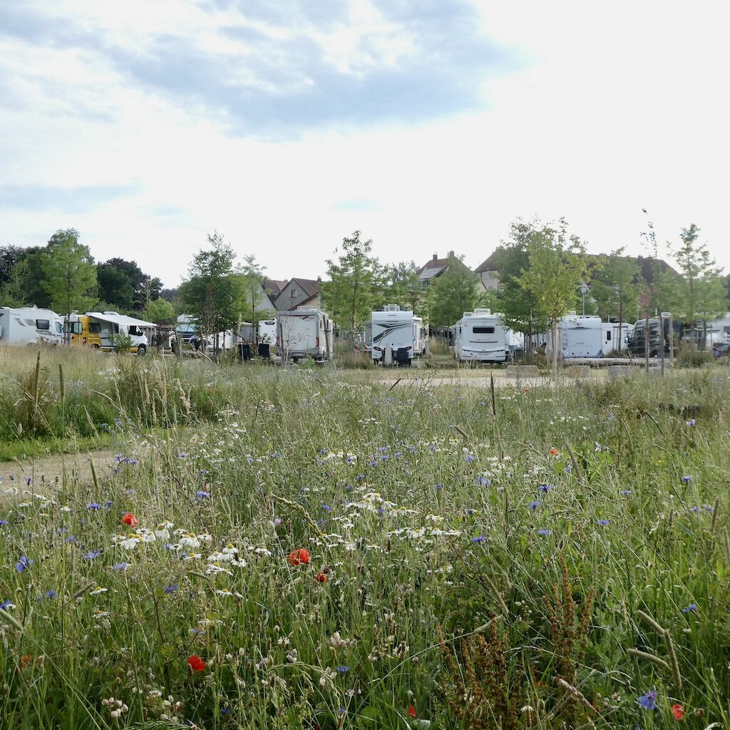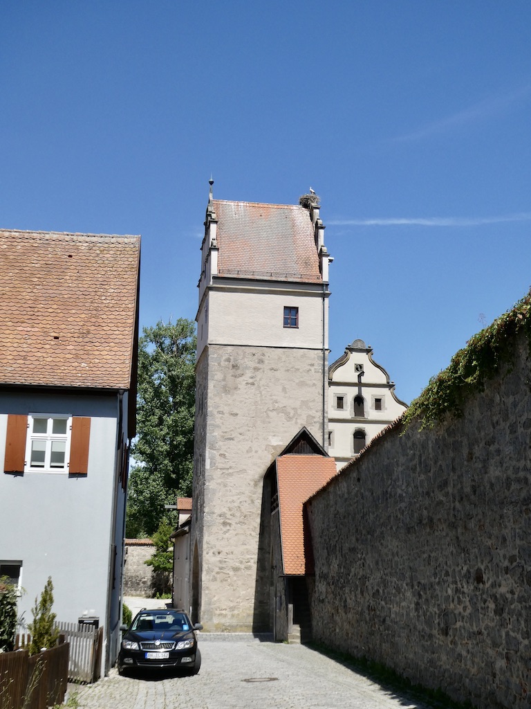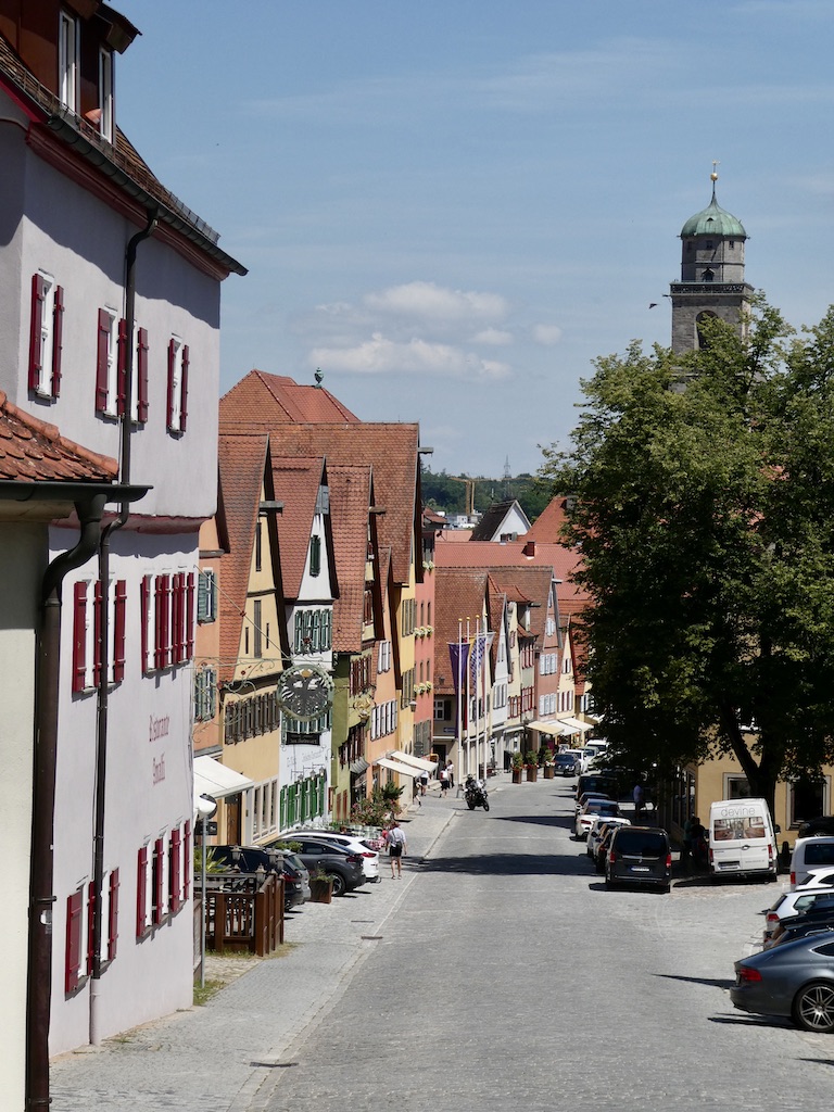 Über Feuchtwangen, wo wir zum Entsorgen und Einkaufen kurz anhalten, sind wir nach nur kurzer Fahrt schon vor 11 Uhr auf dem Stellplatz in Dinkelsbühl.