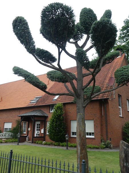 Heute wollen wir mehr darüber wissen. Er sieht sehr exotisch aus, doch es ist eine etwa 50 Jahre alte Zeder, die nur so speziell geschnitten wurde.