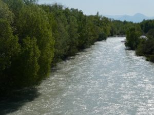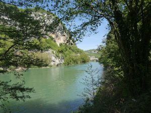 Bei „La Balme“ zwängen sich Fluss und Strasse durch einen Engpass.