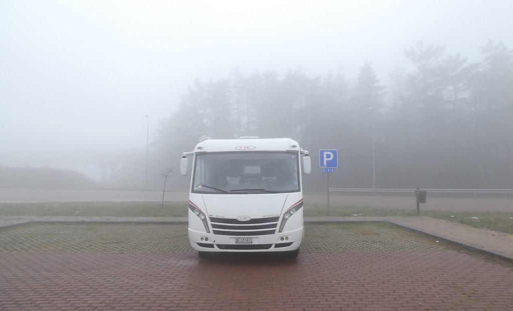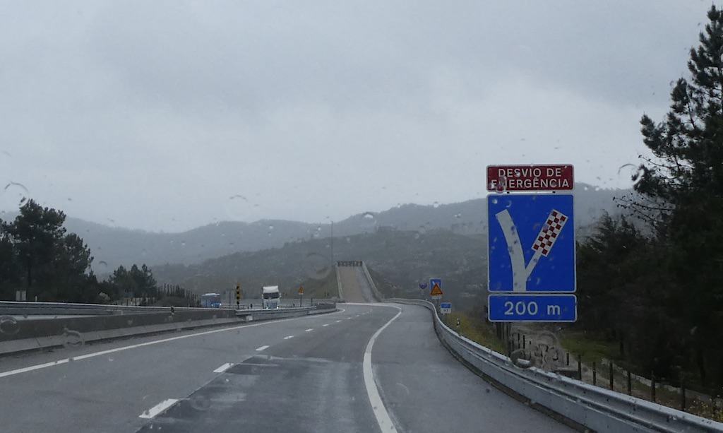 Später fahren wir auf der A4 östlich. Auch hier folgt uns Regen und starker Wind.