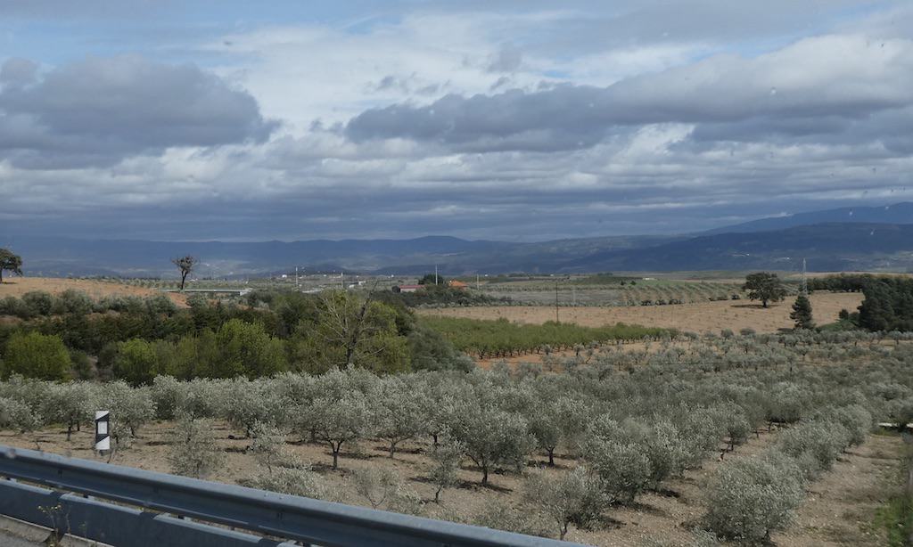 Und auf einmal kommt doch tatsächlich die Sonne durch und zeigt die abwechslungsreiche Landschaft in besserem Licht. Olivenbäume soweit das Auge reicht.