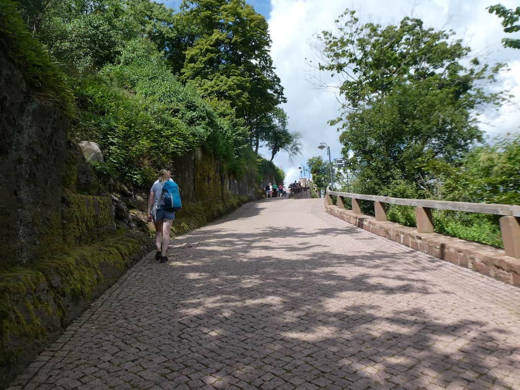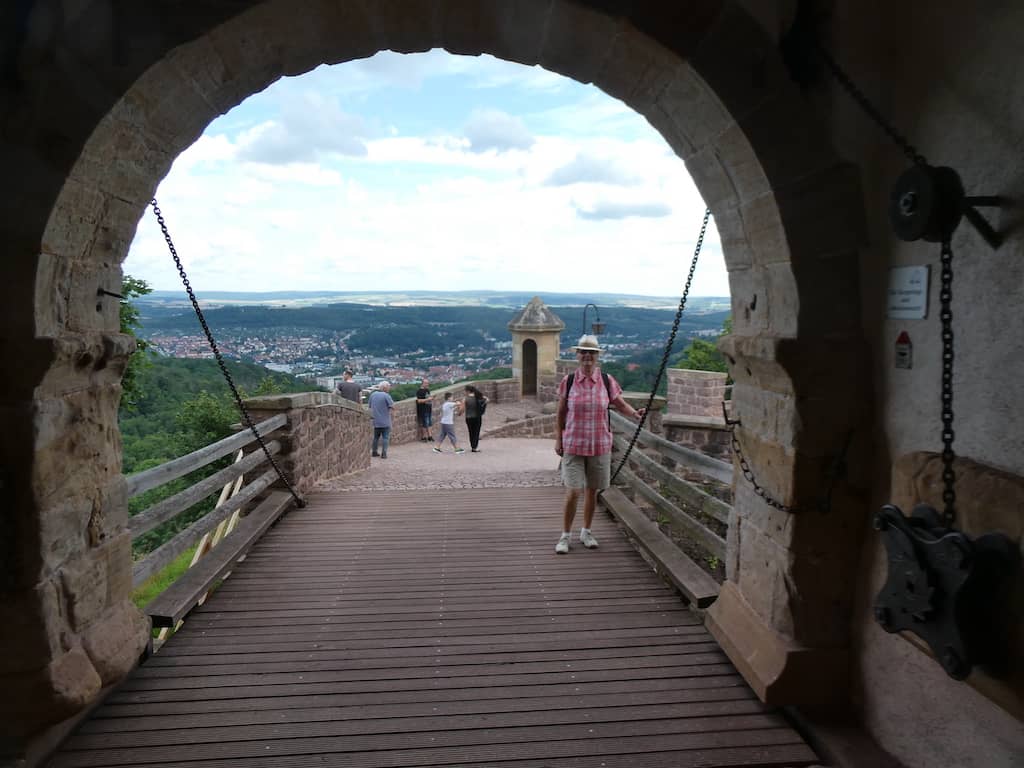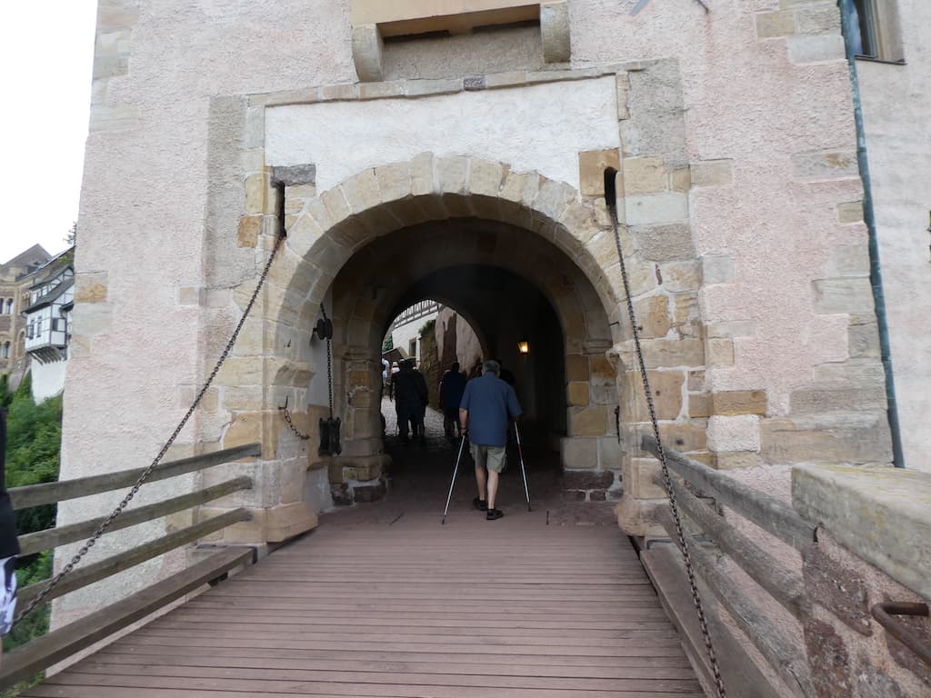 In Eisenach waren wir früh genug auf dem Parkplatz am Prinzenteich, denn der füllt sich rasch. Unten steht ein Hinweis: 30 Minuten zur Burg. Zum Glück lassen wir uns davon nicht in die Irre führen, denn das ist in dieser Zeit kaum zu schaffen. Wir nehmen den Bus, den «Luther-Shuttle» bis zur Endstation, kurz unterhalb der Burg. Die liegt in felsiger Höhe über uns.