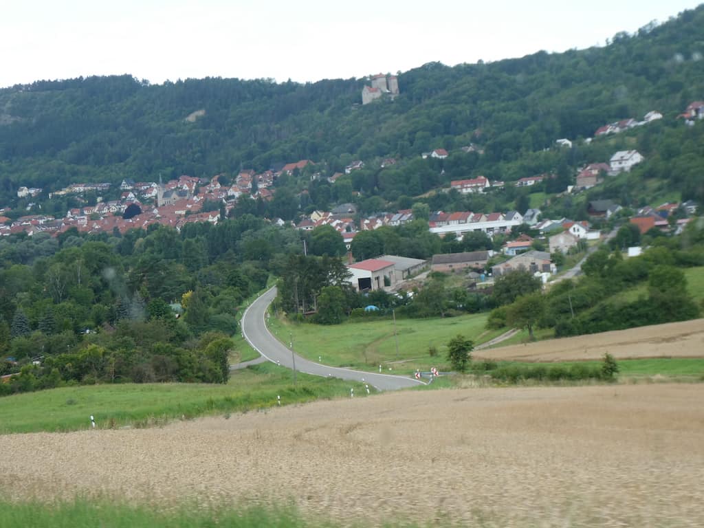 Ein erster Stellplatz in Treffurt an der Werra ist bis Ende Juli geschlossen und er gefällt uns auch nicht besonders, wenn auch der Blick auf das Schloss am Berg sehr schön ist. Treffurt liegt noch im ehemaligen «Osten».
