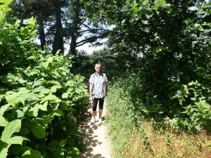 Auf dem Rückweg kommen wir wieder an schönen Häusern und Gärten vorbei und später auch durch üppige Heidelandschaft.