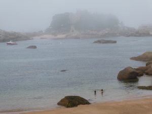 Heute Morgen umgab uns dichter Nebel. In der Annahme, dass sich dieser bald lichten würde, fuhren wir nach Trigastel, um dort die Felsenküste „Cote de Granit rose“ zu besuchen.