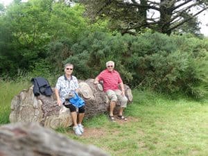 In einen Baumstamm geschnitzte Sitze. Nichts für frisch Verliebte.