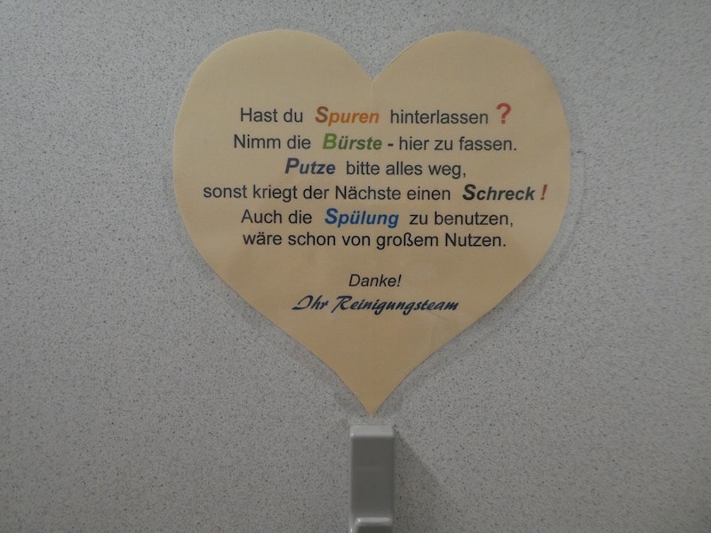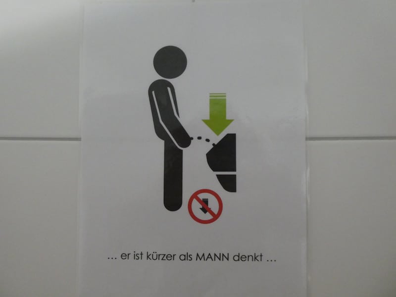 Bei den Herrentoiletten gibt es lustige Hinweisschilder.