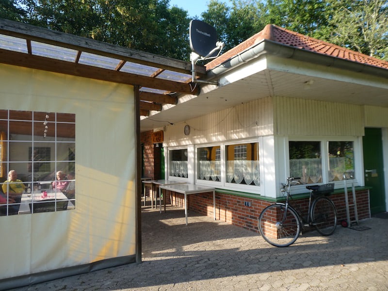 Im Sanitätsgebäude gibt es auch die Camper Klause.