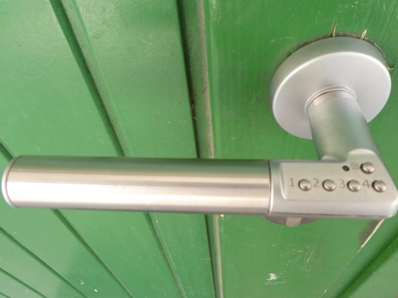 Der Zutritt zu den Duschen erfolgt über einen Code auf der Türklinke. Diese Technik haben wir vorher noch nie gesehen.