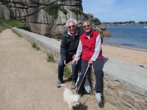 Wir versuchten vergeblich, einen Parkplatz in der Nähe der Küste zu finden. Schlussendlich fuhren wir wieder zurück zum Stellplatz beim Super U, installierten unsere Falträder und fuhren die 3 km bis zum Hafen, dem Ausgangspunkt unserer Wanderung.