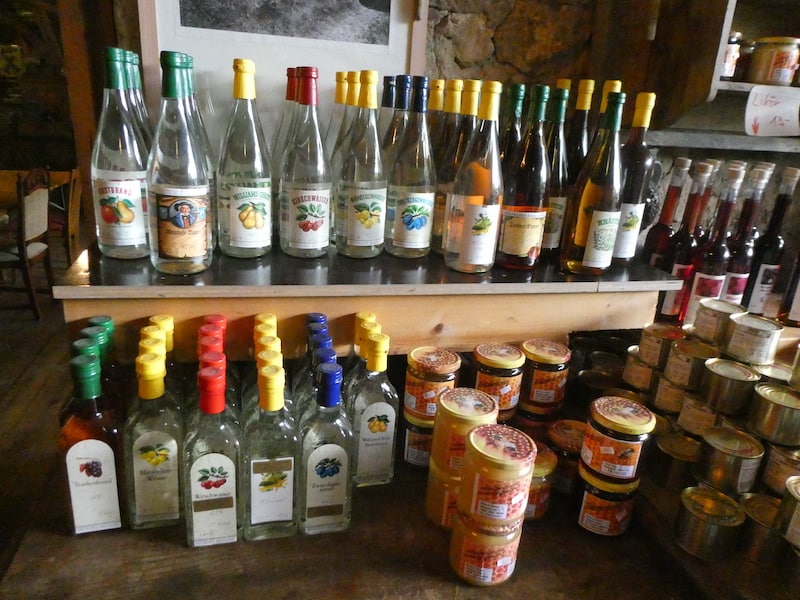 Es werden hier auch alle möglichen regionale Erzeugnisse feilgeboten: Kartoffeln, Bohnen, Honig, Dosenfleisch und Schnäpse.
