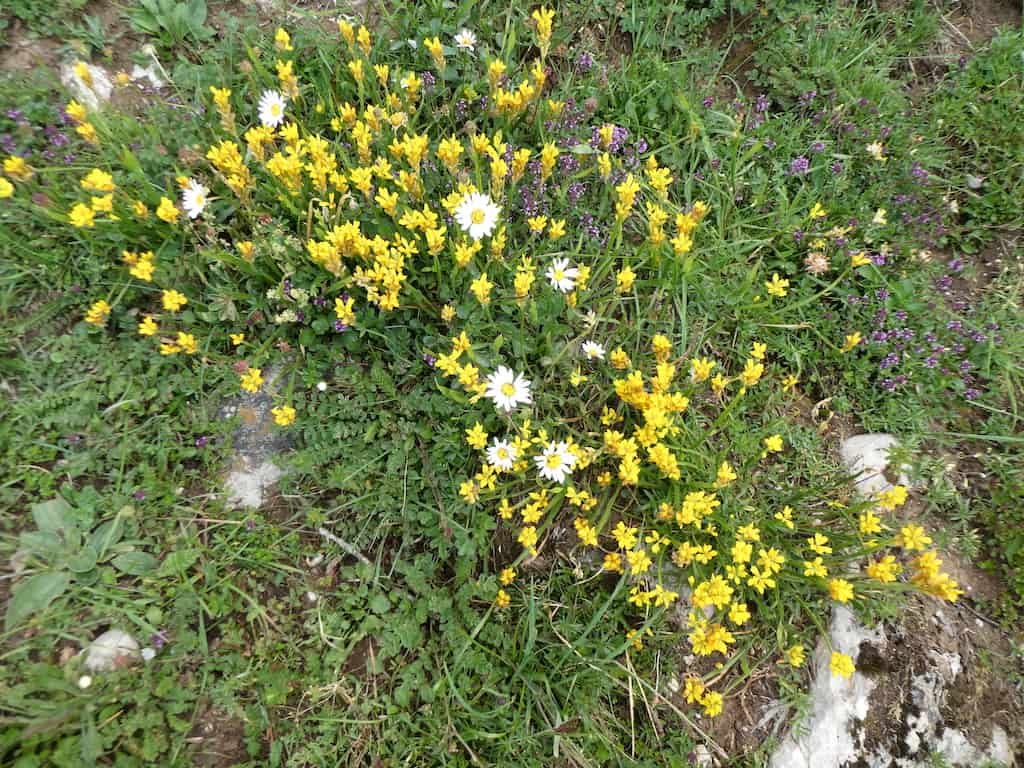 Der Weg ist nicht zu steil angelegt, so können wir die schöne Landschaft und die Blumen geniessen.