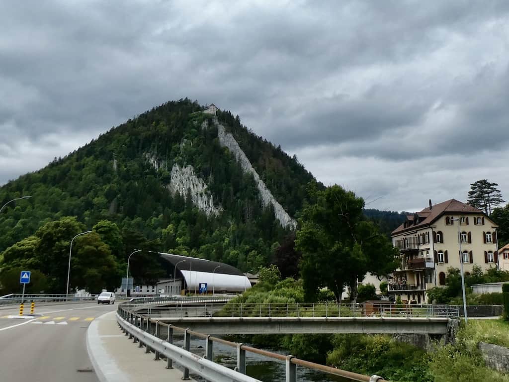 Von weitem fällt der markante Berg «Capeau de Napoleon» (Napoleonshut) in Fleurier mit dem Aussichtsrestaurant auf.