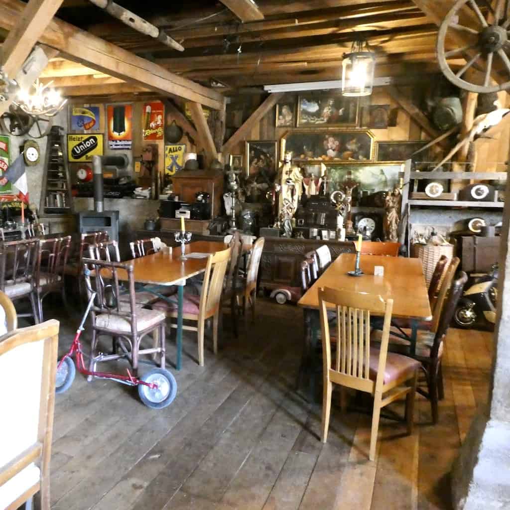 In der Gaststätte lassen wir uns inmitten der ganzen «Museumsstücke» bestens bewirten. Die kleine Karte kommt nicht nur bei uns gut an. Der Laden brummt.