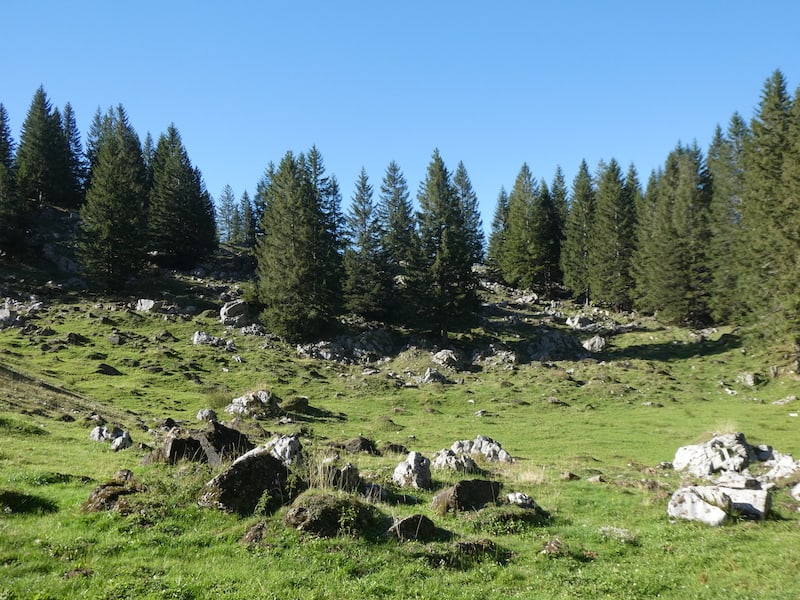 Vorher machen wir hier unten einen schönen Spaziergang über die Alp.