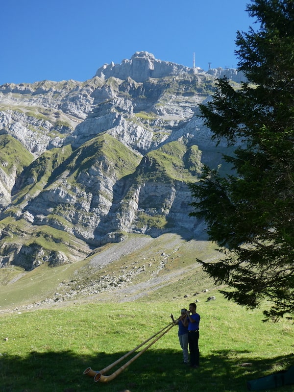 Die Darbietung der Alphornbläser passt auch gut in diese Landschaft. Was ist sie doch flott unterwegs, die Oma Renate 😀.