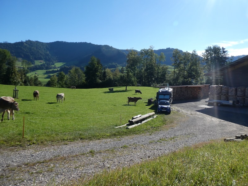 Freitag: Nachdem endlich alle Fliegen gekillt waren, hatten wir auf dem Bauernhof eine ruhige Nacht. Es ist hier alles vorhanden, wenn auch etwas rustikal: Entsorgen neben dem Misthaufen über dem Güllefass war für uns auch eine Première.