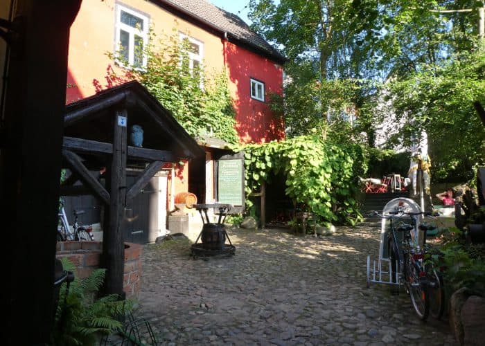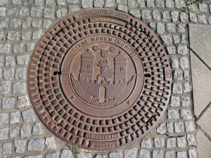 Von hier ist man in 10 Minuten zu Fuss beim Hafen von Waren und wenig später im Zentrum. Schöne Kanaldeckel hat die Stadt.