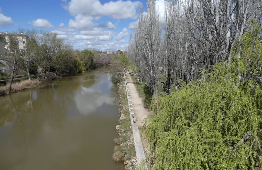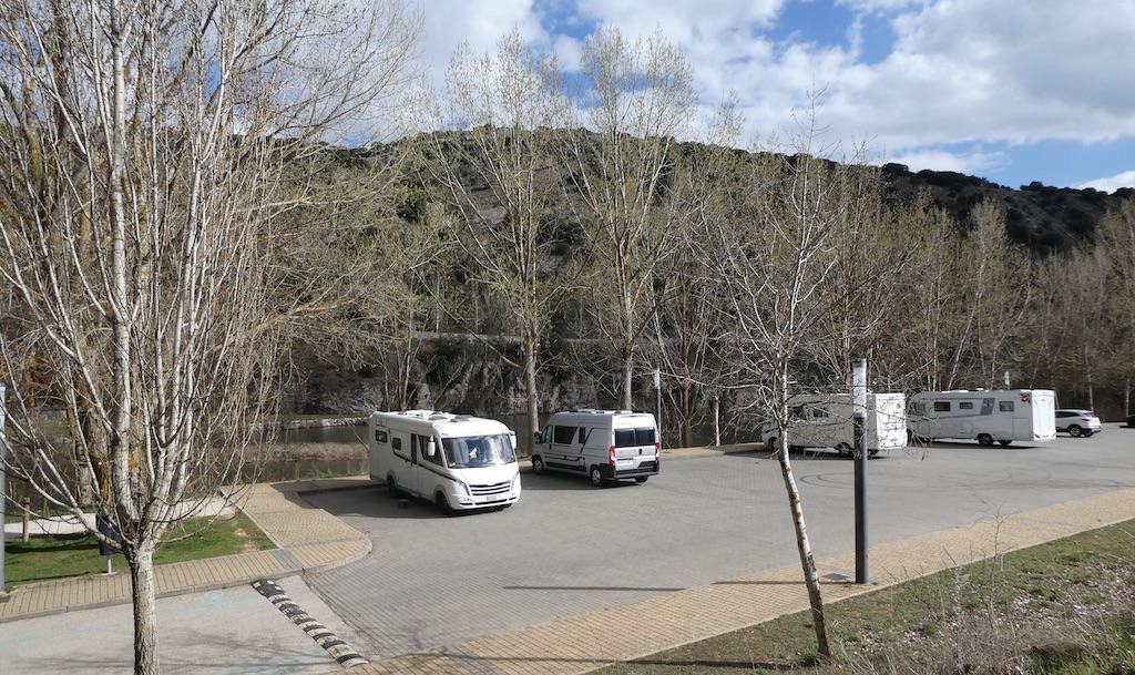 Es gibt hier 3 Stellplätze. Wir wählen den etwas abseits liegenden am Fluss Duero, den wir ja schon seit Tagen verfolgen. Der Duero entspringt in dieser Provinz Soria in den „Picos de Urbión“ (wo wir vorhin noch Schnee sahen). Er durchfliesst Nordspanien und Nordportugal und mündet nach etwa 897 Kilometern bei Porto in den Atlantik.