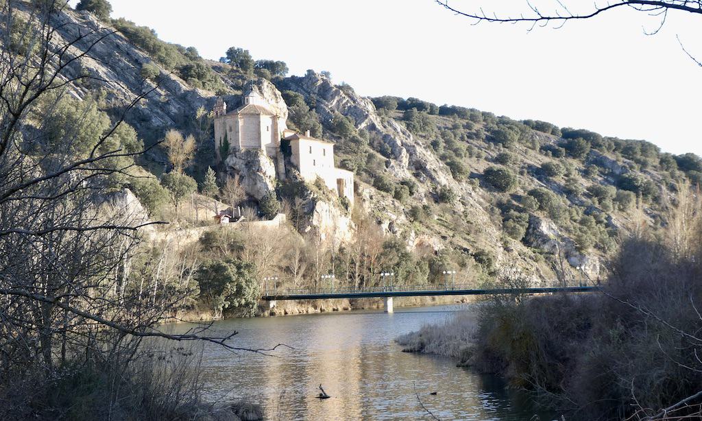 In der Abendsonne spazieren wir noch ein Stück am Fluss entlang. In Sichtweite liegt eine Einsiedelei «Ermita de San Saturio», die viele Besucher anzieht.