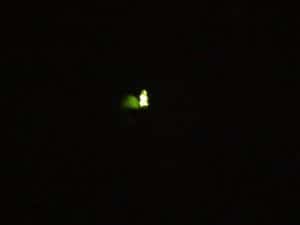 Im Blitzlicht erkennt man den Käfer und das leuchtende Hinterteil.