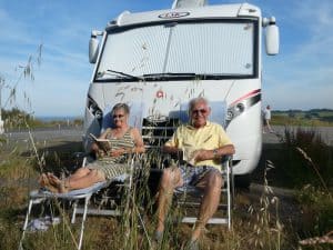 Zum Mittagessen mussten wir mit der Markise Schatten machen. Dann kam Wind auf und schon war es im Schatten zu kalt.