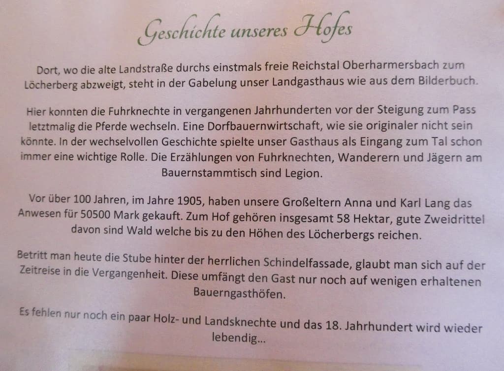 Bald schon taucht in Oberharmersbach ein erster Gasthof auf und „er ist unser“, ohne lange zu fackeln.