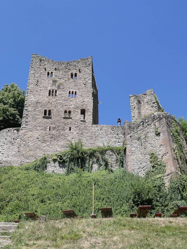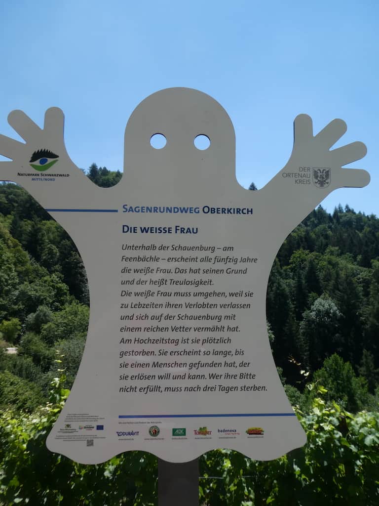 Zu einer richtigen Burg gehört auch ein Gespenst. Hier ist es die Weisse Frau mit recht brutalen Sitten. Man hat von hier oben einen schönen Blick ins Rheintal und die Rebberge.