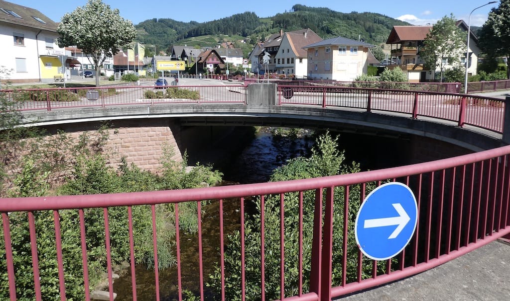 Nachmittags fahren wir weiter in Richtung der Schwarzwaldhöhen. In Oppenau kommen wir über einen ganz speziellen Kreisel, unter dem der Fluss Rench fliesst.