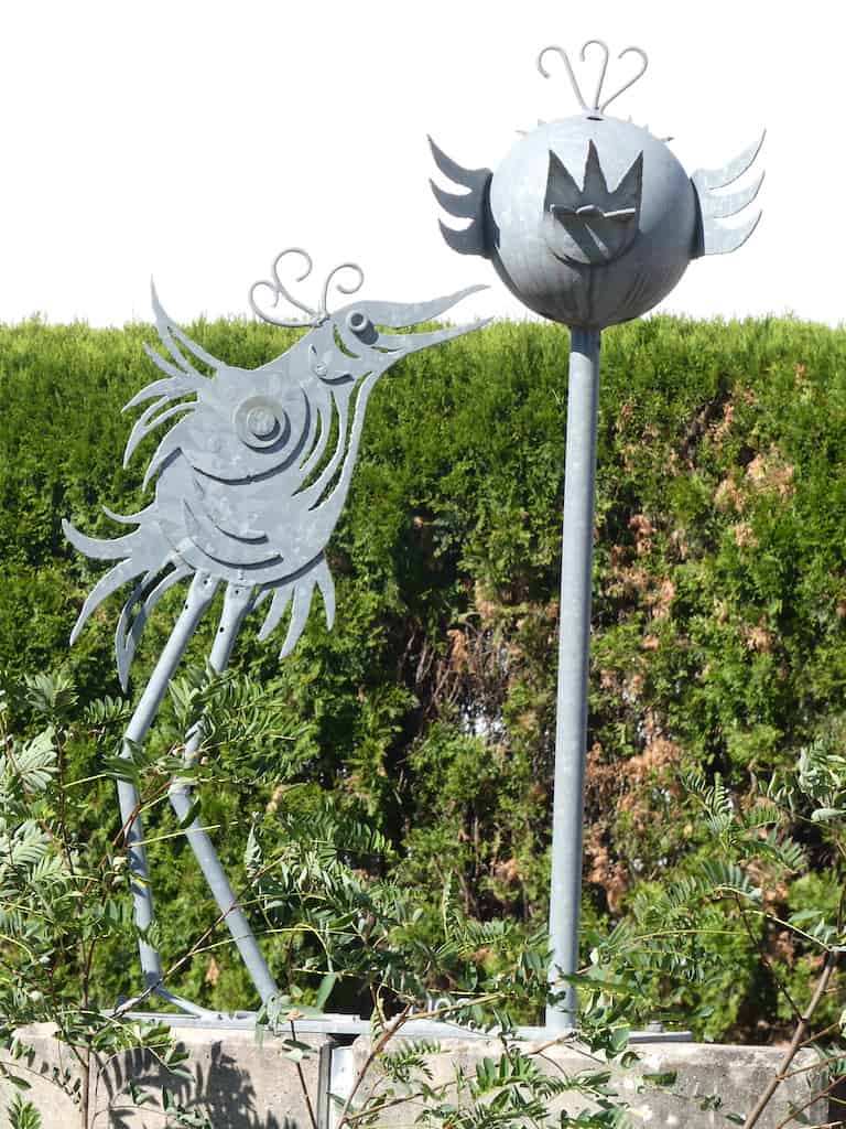 Das Geländer wird von lustigen Blechskulpturen geziert.