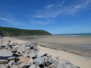 Nächster Halt ist eine Entsorgungsstation beim Plage de Tournemine, auch ein wunderbarer weisser Sandstrand.
