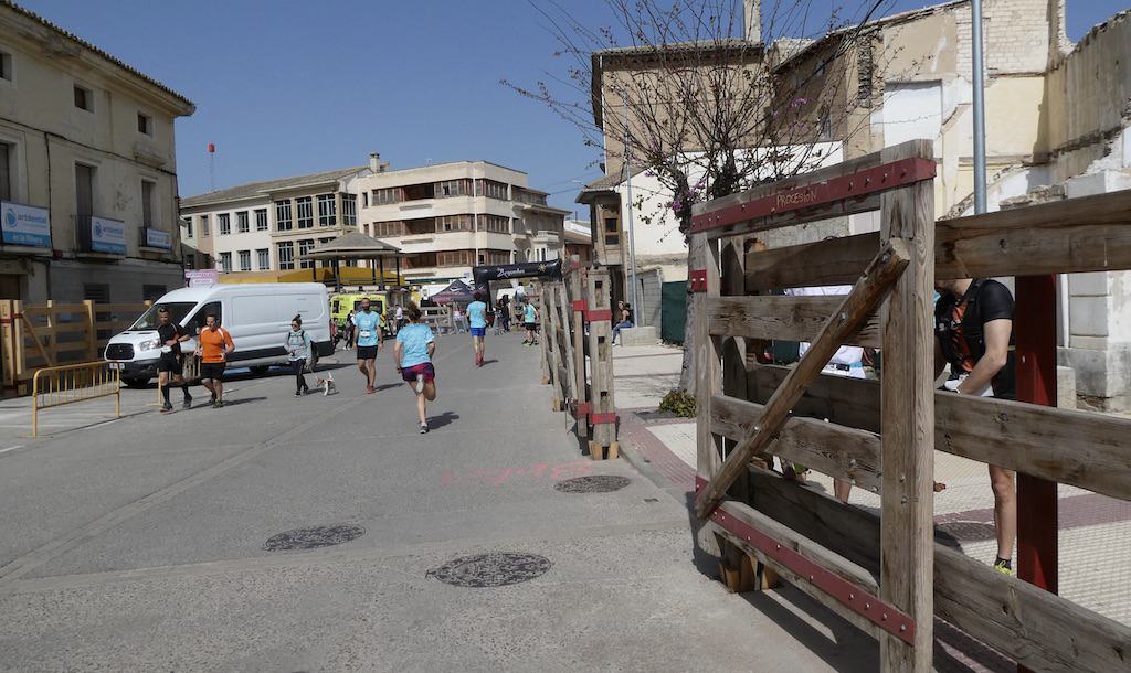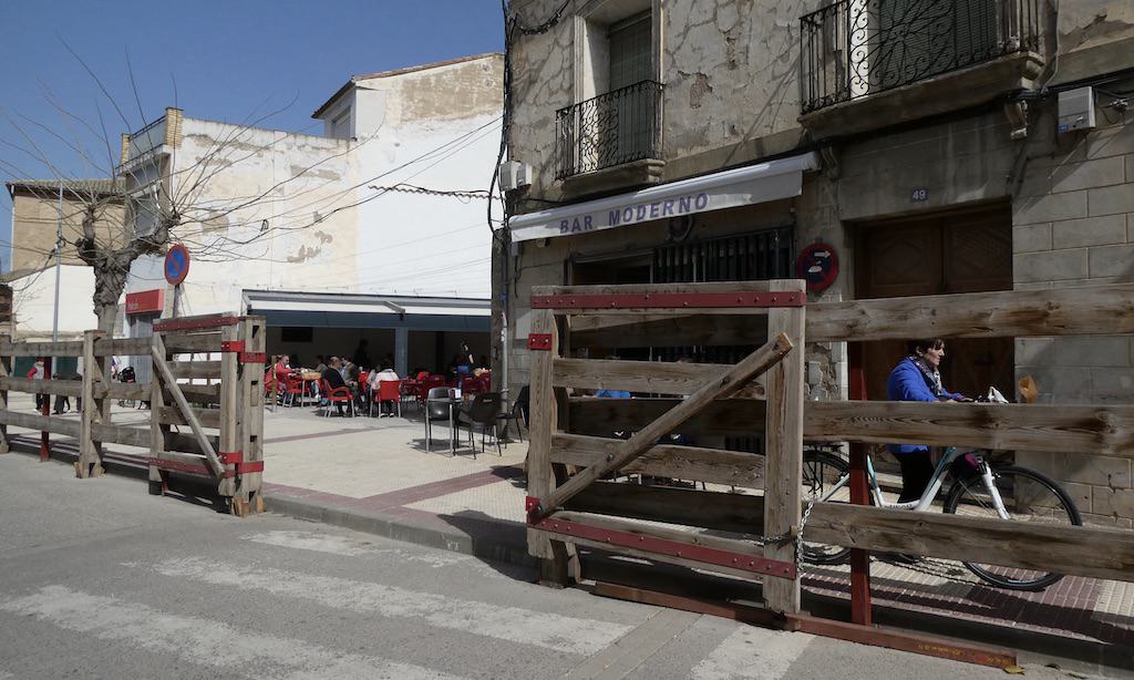 Man trifft gerade Vorbereitungen für einen Lauf, der wohl bald starten wird. Die massiven Abschrankungen am Strassenrand sind aber nicht wegen der Läufer. Hier werden bald auch Stiere durch die Strassen gejagt. Andere Länder, andere Sitten!