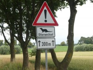 Plötzlich ein, für uns neues, Warnschild: „Achtung Otterwechsel“. Gesehen haben wir keinen, aber das kennen wir ja schon von Schweden mit den Elchschildern.