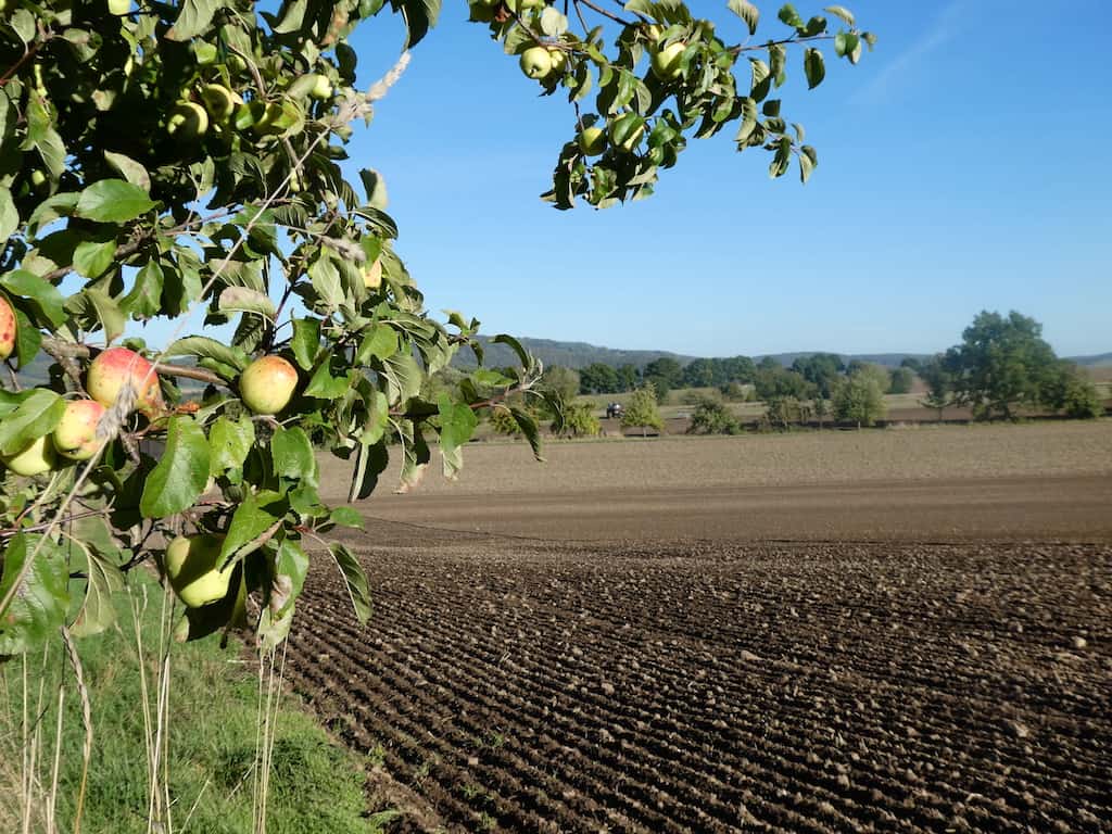 Oben auf dem Plateau werden grosse Felder bewirtschaftet.