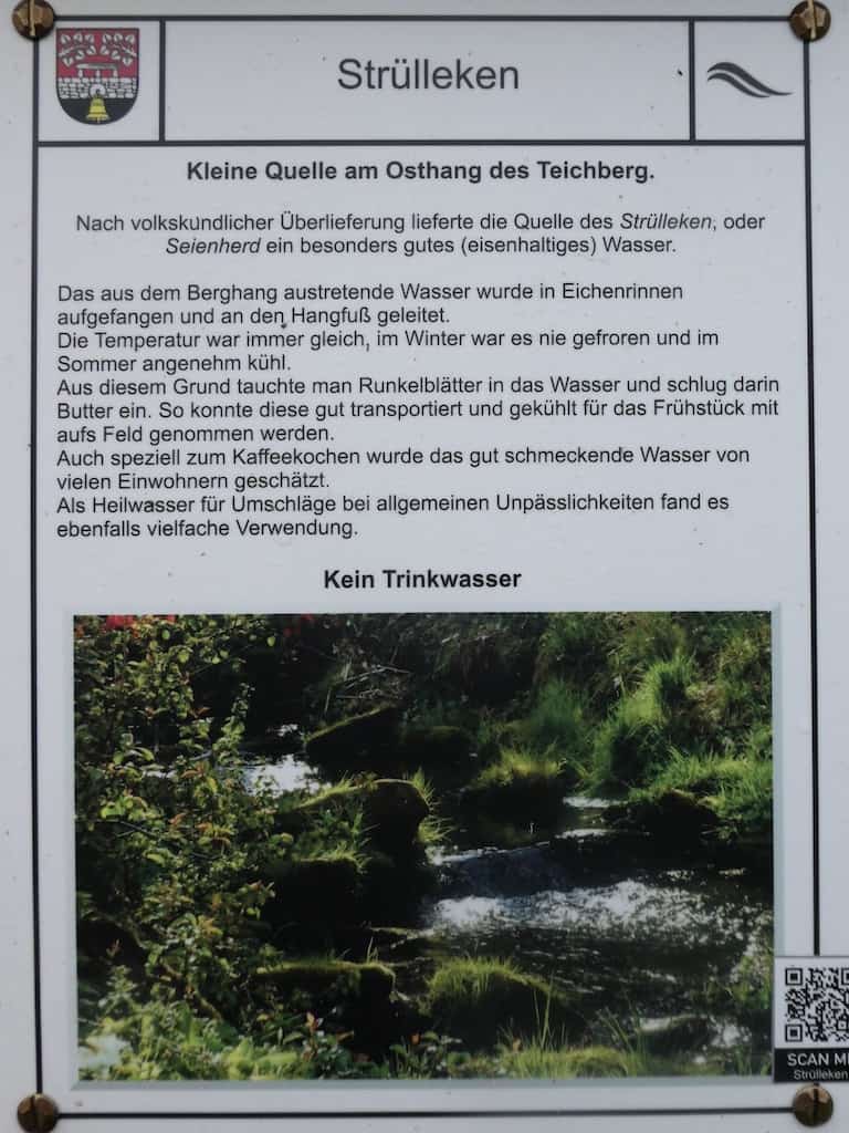 Dann kommen wir an der Quelle des Strülleken vorbei. Dieses wenige Wasser betreibt weiter unten . . .
