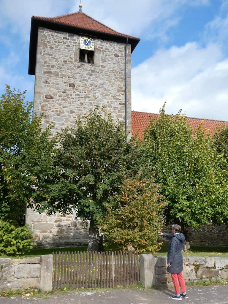 Die Ev. Kirche ist (wie meistens) geschlossen. Auffallend ist ein uneinnehmbarer Wehrturm aus dem Mittelalter.