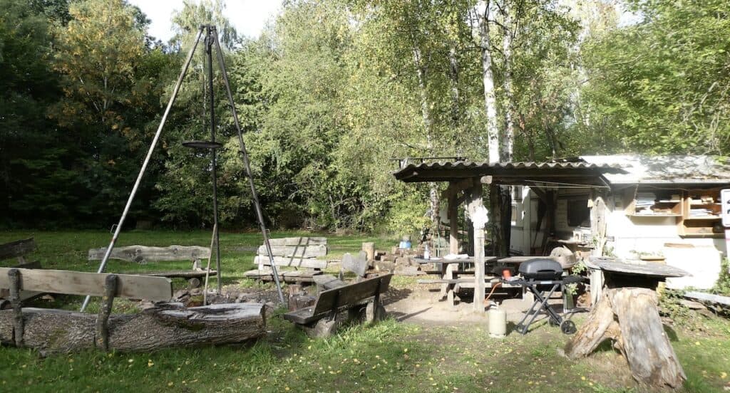 So sieht die Feuerstelle auf dem Stellplatz bei Tageslicht aus, wo wir gestern Nacht lange gefeiert haben, siehe Nachtrag um 01:45 Uhr.