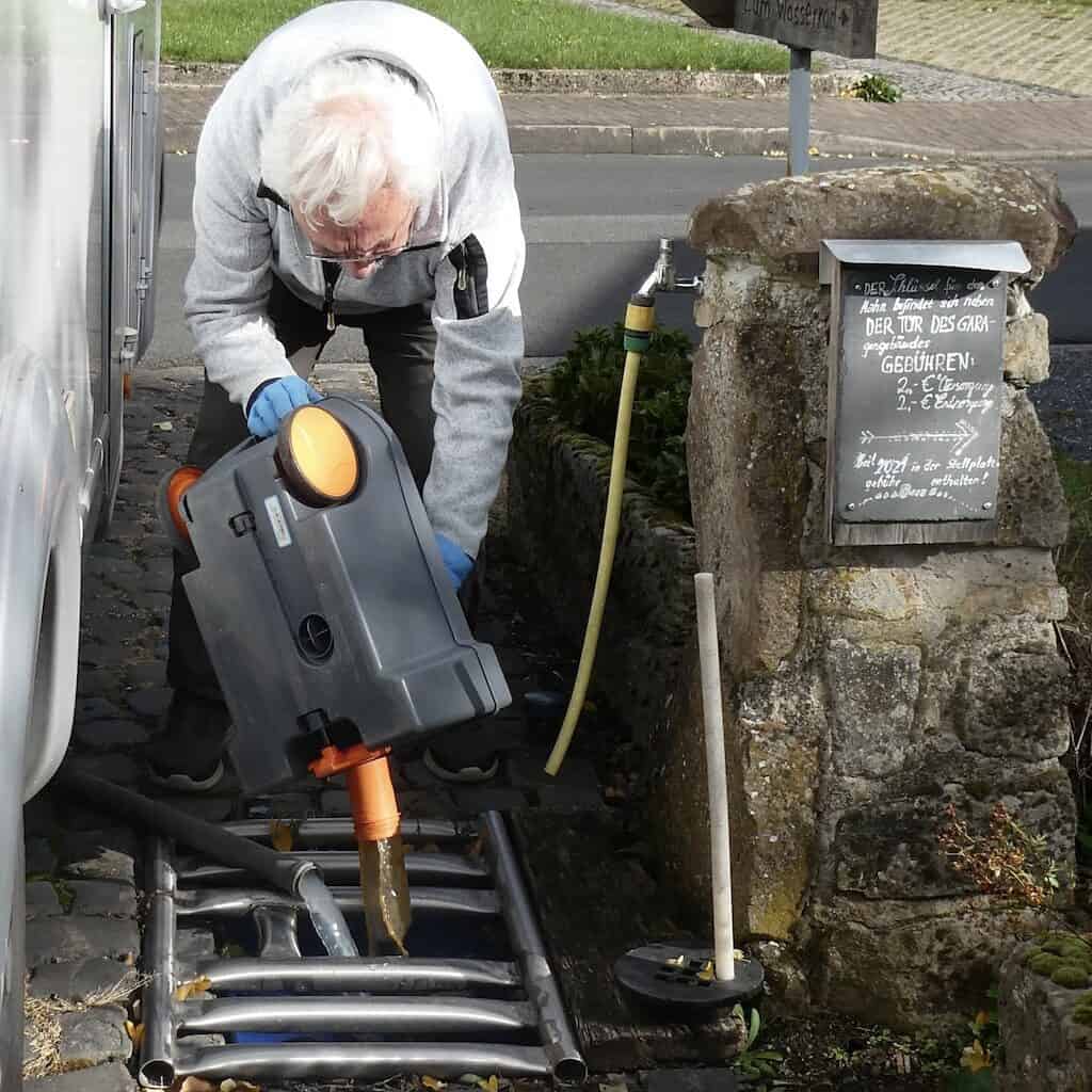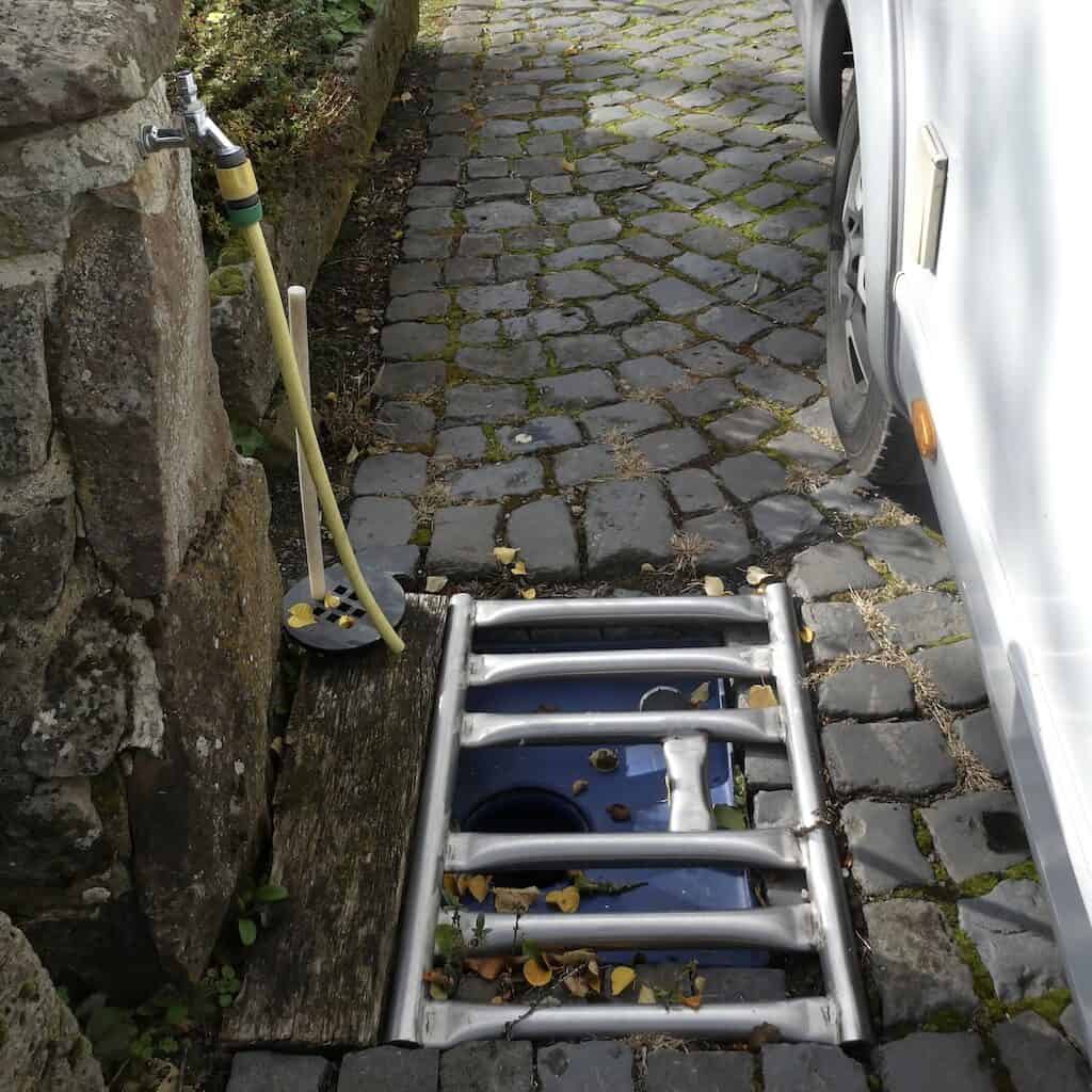 Bevor wir Bühren verlassen, fahren wir noch zur 500 Meter entfernten Entsorgungsstelle, wo die Stellplatzbetreiber wohnen. Eine ebenso einfache, wie geniale Einrichtung, bei der man die Erfahrung eines erfahrenen Campers erkennen kann. Für Frischwasser hängt man natürlich den eigenen Schlauch an.