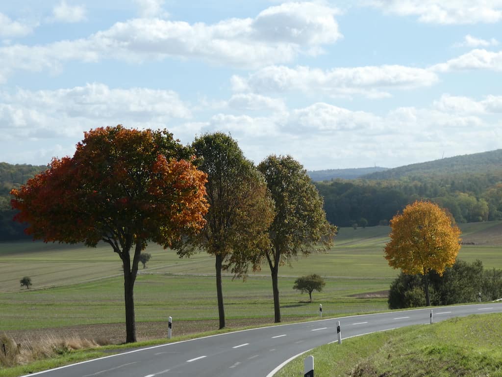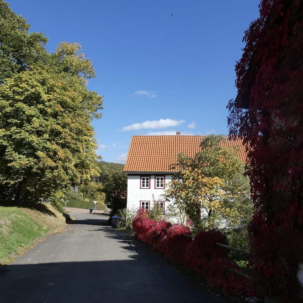 Dann geht’s über Land weiter. Schöne Fachwerkbauten und eine grossartige, bunte Herbstlandschaft.