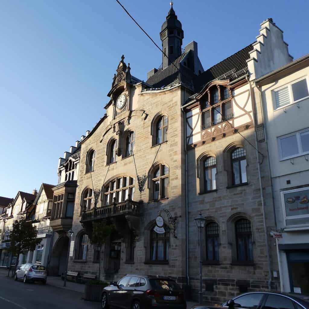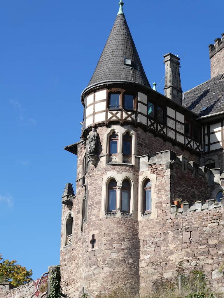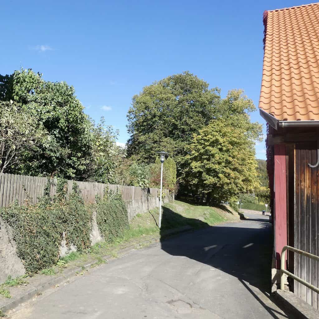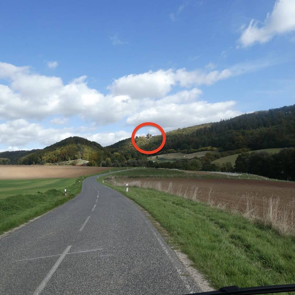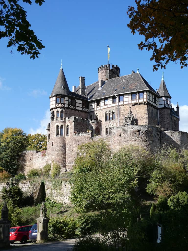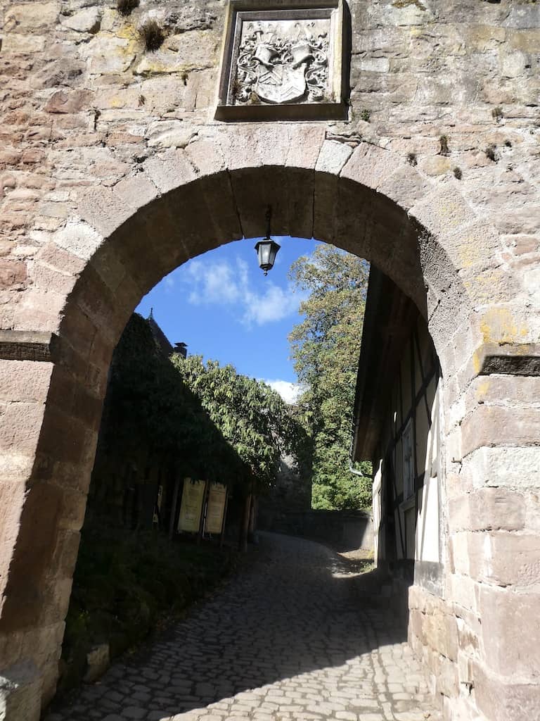 Wenig später taucht ein Wegweiser zum Schloss Berlepsch auf und bald sehen wir die mittelalterliche Festung ganz nah vor uns.