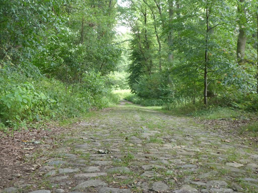 Dieser Waldweg mit Kopfsteinpflaster ist für das Auge ein Vergnügen, weniger allerdings für Michaels Gesäss.