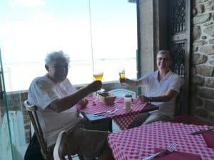 Im Restaurant „Croix Blanche“ essen wir recht ausgedehnt, denn wir müssen Zeit schinden. Die Flut ist erst um 21:30.