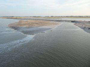 Der frühere Zufahrtsdamm zum Klosterberg hatte zur Folge, dass die Bucht immer mehr versandete. Es wurde stattdessen eine Brücke gebaut und ein Staudamm. Mit dem bei Flut zurückgehaltenen Wasser wird nun bei jeder Tide wieder Sand hinaus ins Meer gespült.